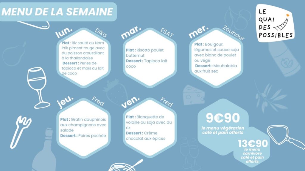 Dans cet espace convivial, la Petite Cantine Durable ne propose pas seulement de la nourriture, mais également une expérience gastronomiqueoù l’engagement social se mêle à l’art culinaire. Les moments partagés autour de la table deviennent autant d’occasions d’échanges et de rencontres, favorisant un esprit communautaire chaleureux et inclusif.
